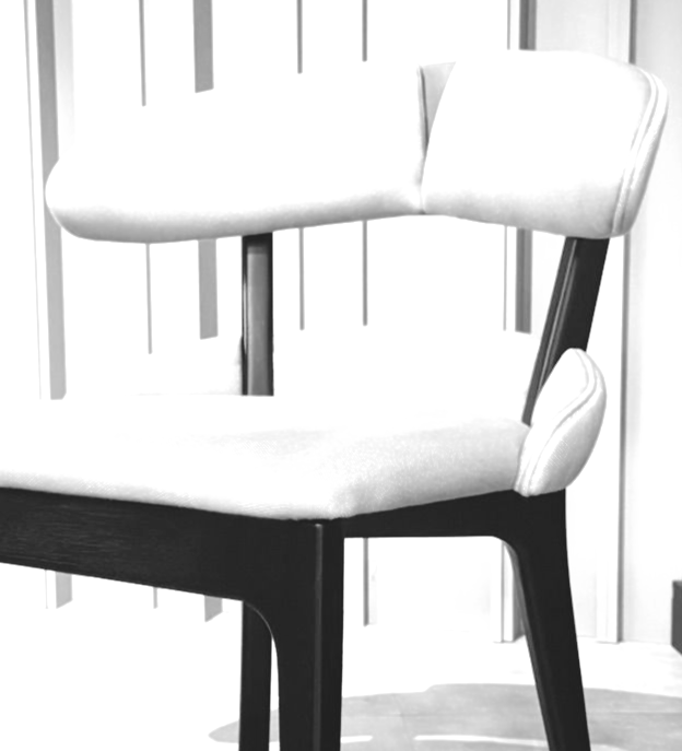 Sua parte superior com suas " abas" envolvem as costas mesmo sendo uma cadeira sem braços podendo apoiar ate os cotovelos. Conforto, a palavra que mais se alinha com essa cadeira.